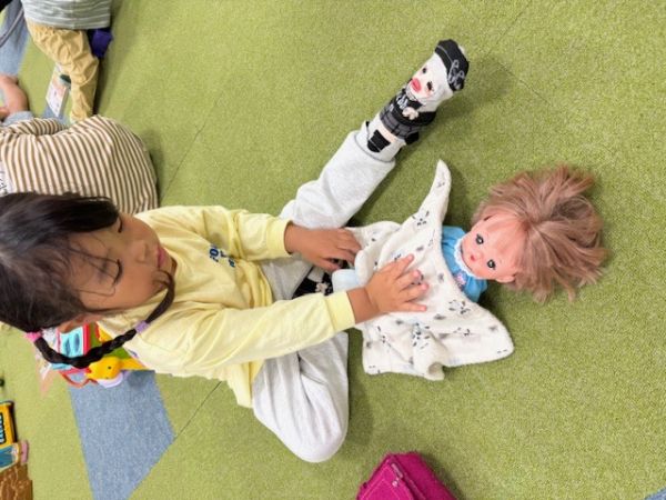 子ども同士すぐに遊びに誘い合い一緒にマグネットブロックをしてお家を作ったりメルちゃんの着せ替え遊びを楽しんだりと新しいお友だちがたくさんできていましたよ✨