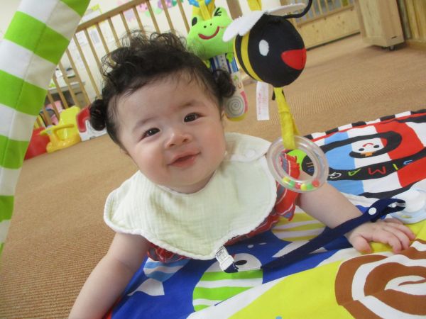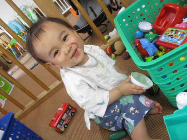 保育士と一緒にお歌を歌ったりおもちゃを探していると自然に笑顔になっていましたよ♡