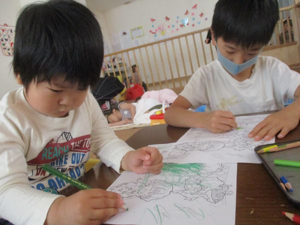 ぬり絵じろじろ♪夢中で塗ったよ✩