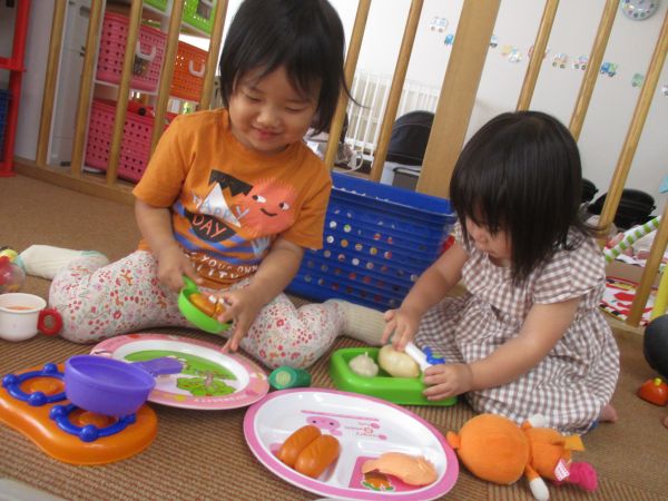 座ってパズルをしたりおままごとをして、お友達と遊んだり♡