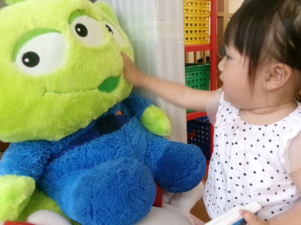 スプーンでぬいぐるみや保育士に食べさせてくれるのが好きな子☆