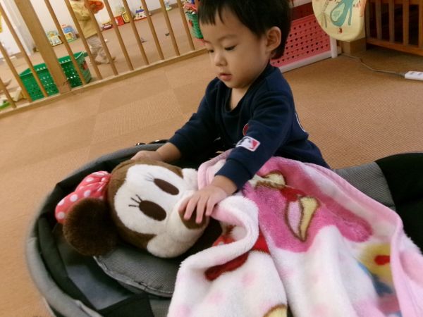 異年齢での関わりもあり手を繋いでお部屋を散歩したり