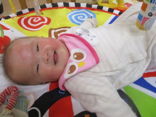 腹ばいがとっても上手だね(*´▽`*)笑顔いっぱい遊んだよ♡
