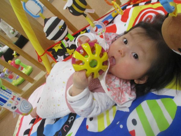鈴の入ったボールをニギニギ✩どんな音がするかな?