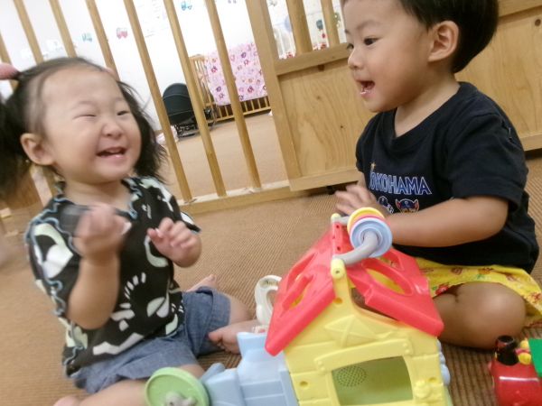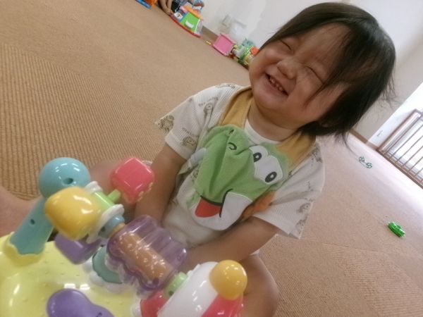 涙が出ていると、、、よく来てくれる慣れっこなお友だちがおもちゃを持って来てくれました!