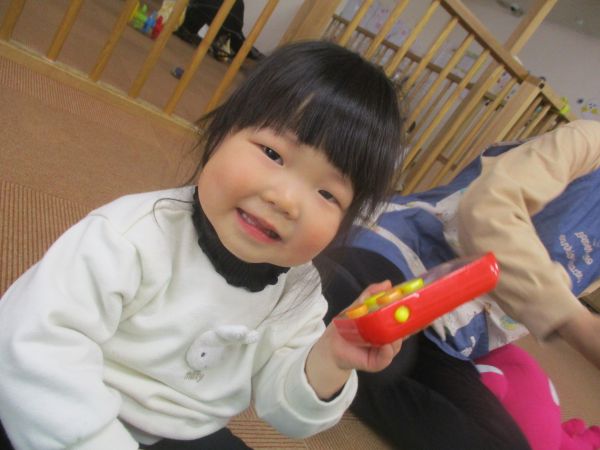 おもちゃを手に取って遊んでいました(*^-^*)