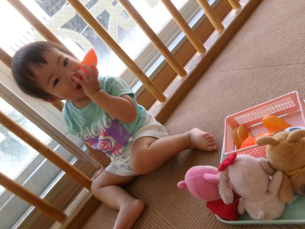 ボールをポーン(^O^)楽しく過ごせるようになったよ♡
