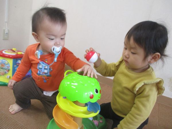 ここにボールを転がして、、、♡一緒に遊んだよ(*^▽^*)