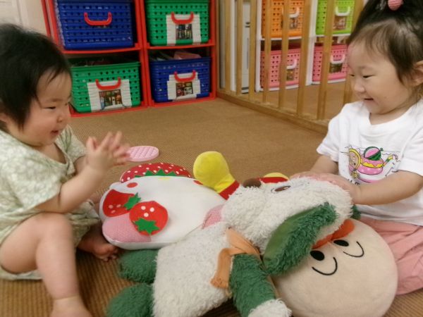 1.2歳のお友だちは4.5歳の大きなお姉ちゃん、お兄ちゃんたちの遊びに興味津々です♡