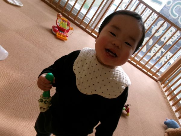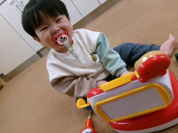 好きなおもちゃを見つけると、ピタッと涙は止まりニッコリ遊び始めましたよ☆