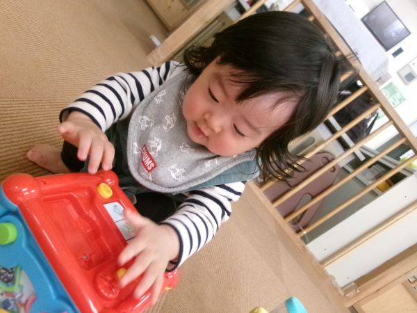 ここのボタンを押すと楽しい音がするんだよ(*'▽')