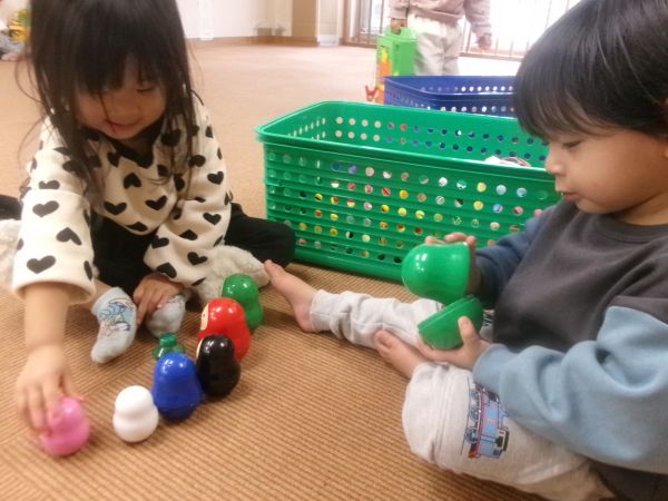 保育士と一緒にお外を見たり、好きなおもちゃを探したりしていると