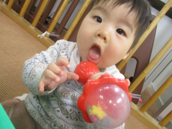 わんわんのマラカスをフリフリ♪楽しいね(*'▽')