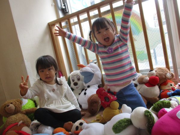 ぬいぐるみを集めてお家を作ったよ(*'▽')仲良しになったね♡