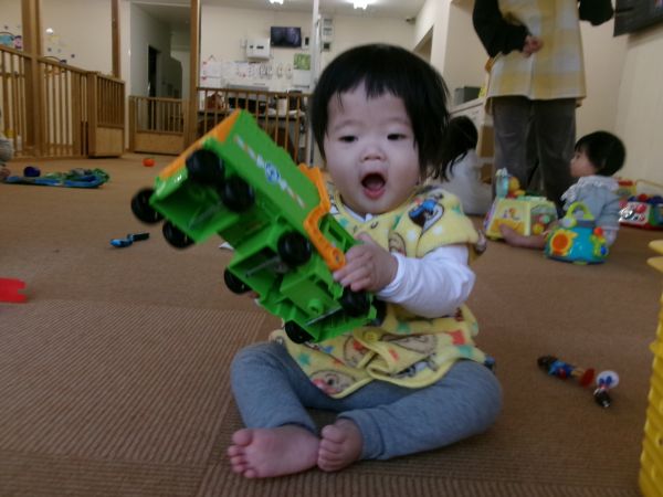 パウパトロールの車に夢中でニコニコ♡