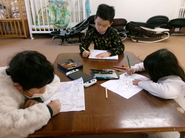 塗り絵や宿題に集中!!