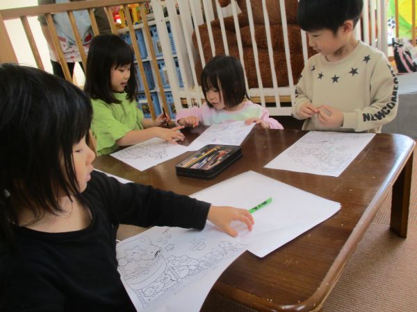 みーんな同い年✩気付けば仲良く一緒にぬり絵(^^♪