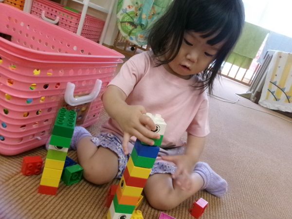 高い高い!上手にブロックを積み上げたよ(^^♪