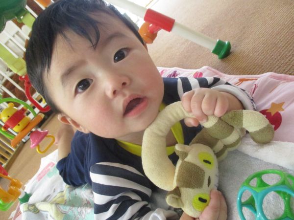 おもちゃを上手に握ってあそんだよ(^○^)