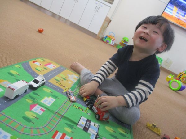 プップー!!車が走るよ(*^▽^*)あ!ぶつかっちゃう!!