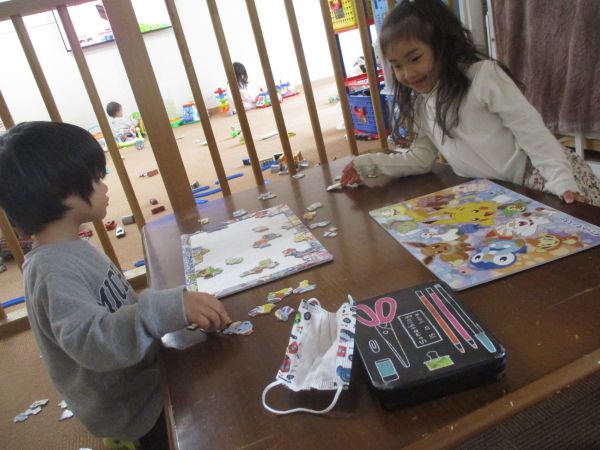 大きなお友達はパズルに挑戦!!集中して遊んだね(^○^)