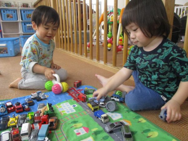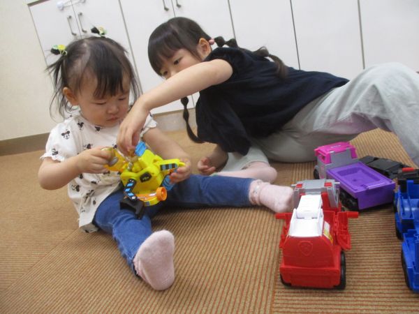 保育士と一緒におもちゃを探しに行ったり、お友だちが貸してくれたりで好きなおもちゃが見つかると、、、