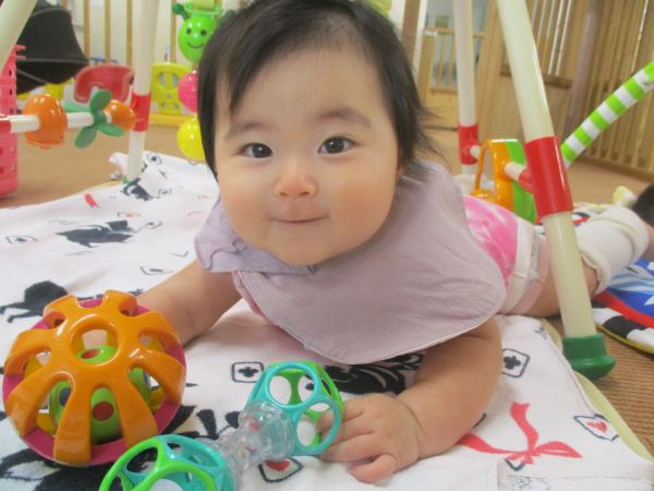 腹ばいでにっこり♡少しずつ腹ばい時間も長くなってきたよ♡
