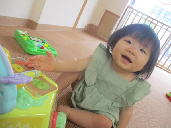 先生のそばまでつたい歩き頑張ったよ(^_-)-☆