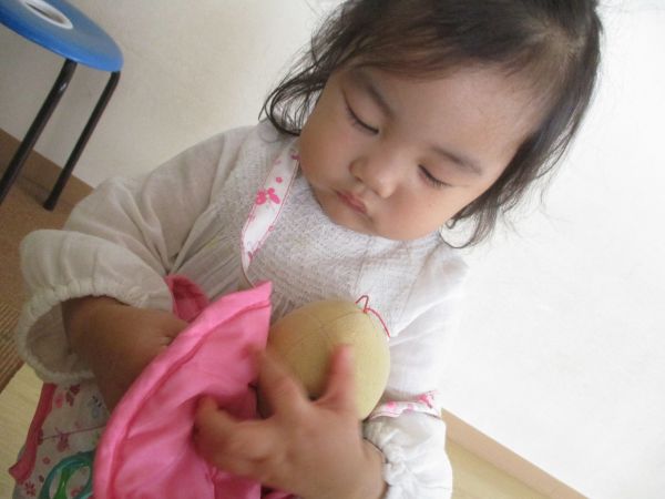 お姉ちゃんに抱っこの仕方おしえてもらったよ!