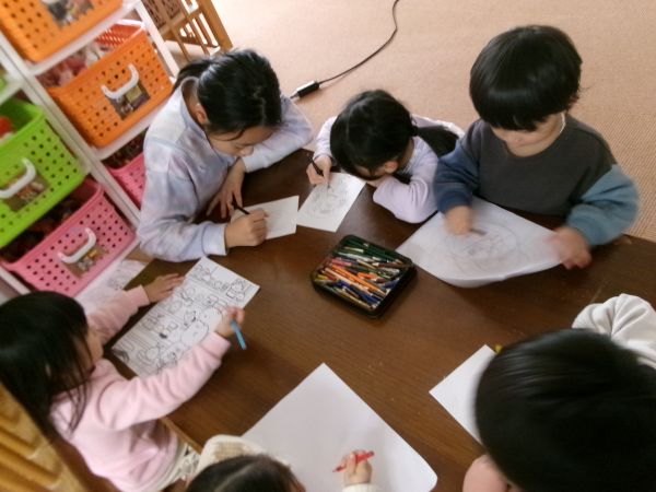 みんな集中して塗り絵&お絵かきtime(*^^)v