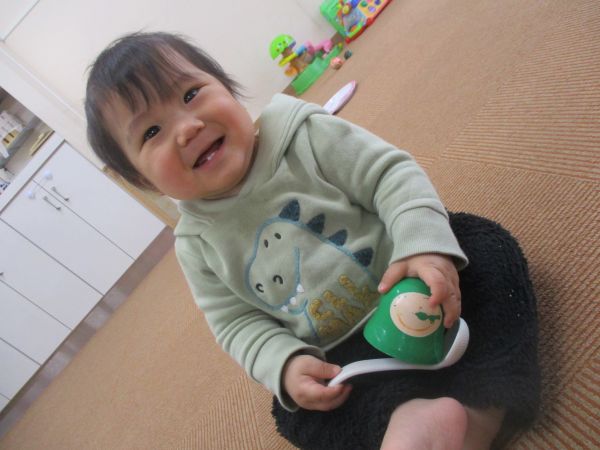 保育士と遊んでいると涙も止まって気になるおもちゃに手を伸ばしていましたよ♡