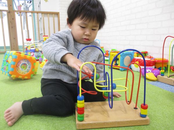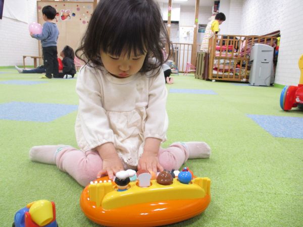 久しぶりで泣いてしまう子、楽しく遊ぶ子様々でしたが泣いていた子も少しすると慣れてきて気になる玩具に手を伸ばし遊ぶ様子が見られました🎶