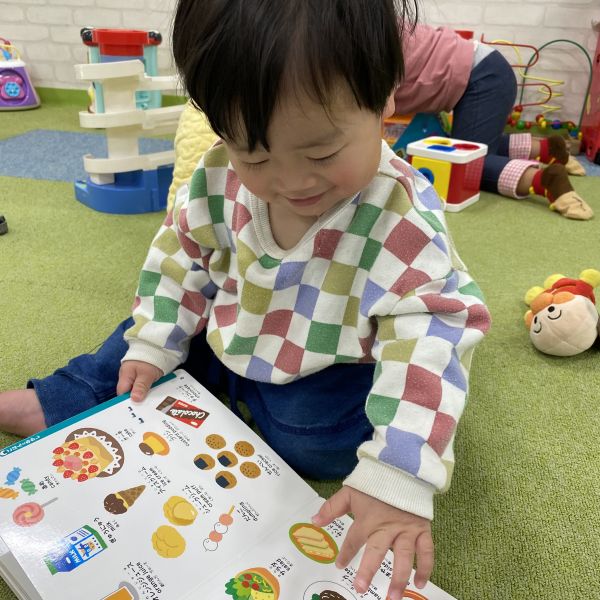トミカはやっぱりパトカーと救急車が大人気!レールの上を走らせたり、箱いっぱいに集めて大切そうに側においてプラレールで遊んで乗り物尽くしでした🚙最近は絵本・図鑑に興味を示す子も多く一緒に読んだり色々な物の名前を教えると「トマト🍅」「わんわん」と一生懸命、言葉を模倣してくれます♪何が好き?と尋ねるとニコニコ笑顔で好きな動物や食べ物を指さししてくれる姿がとても可愛らしかったです💚