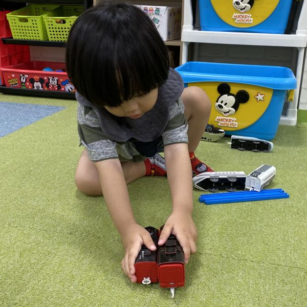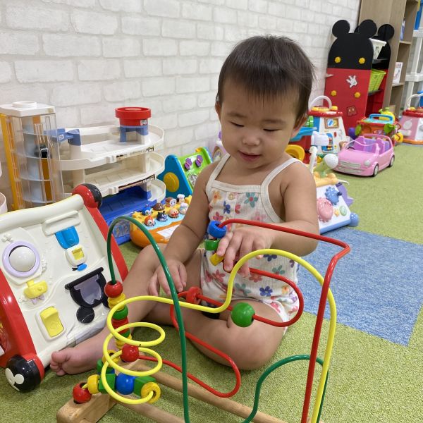 1・2歳児さんたちは慣れっこが多く、にこにこで入室するとすぐにプラレールやボールタワーなどで遊びはじめてましたよ😊