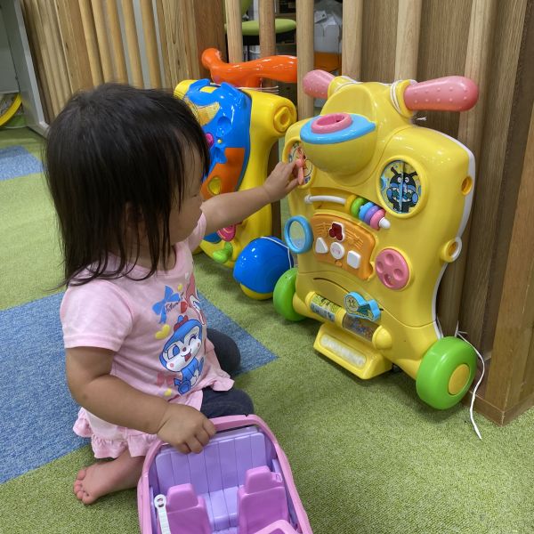 小さいお友だちは音が鳴る玩具がお気に入りのようで、ボタンやレバーをたくさん押したり回したり~と色んな音を鳴らしながらニコニコ楽しんでいました🎵