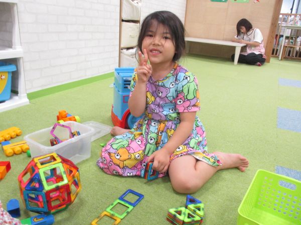 ブロックや積み木など作品が完成すると、保育者に「できたよー」とにこにこ笑顔で作品を見せてくれました🙌