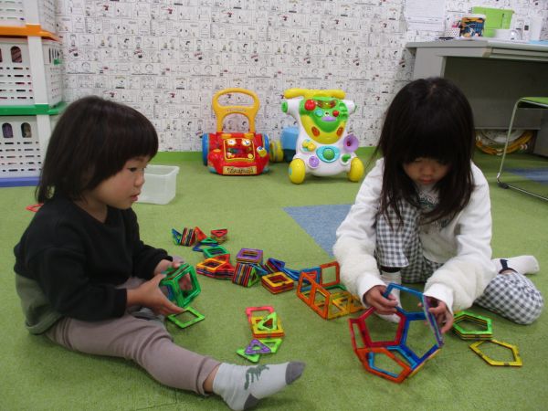 遊びを通してお友だちになったり、積極的に「一緒に遊ぼう~😄」とお友だちを誘い、関わり合いながらとっても楽しそうに過ごしていました🎶
