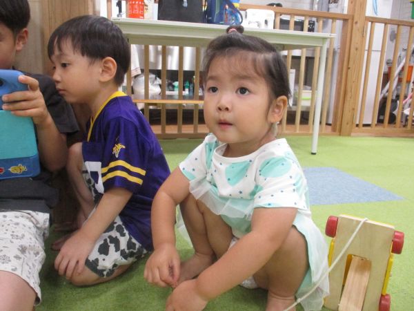 お部屋の中に入ってからすぐに水分補給をして楽しく活動しています🙌