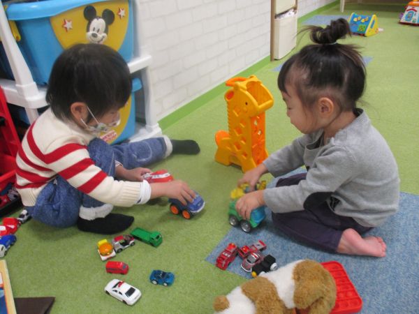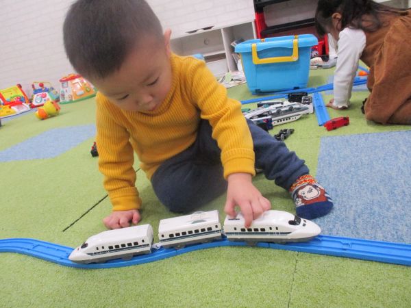 プラレールの線路をながーく繋げてガタンゴトンと新幹線で遊んだり、風船遊びやトミカなど様々な玩具でのびのびと楽しんでいましたよ🎶