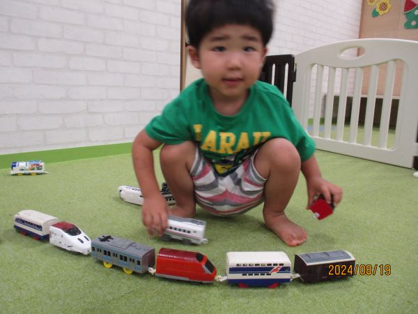 さて今日も朝から少しずつお友だちが遊びに来てくれました♪小さな男の子たちには、プラレールが大人気で『ブーブー』『がたんごとん』『ぷっぷー』など、たくさん言葉を発して楽しく遊んでいました🚃✨