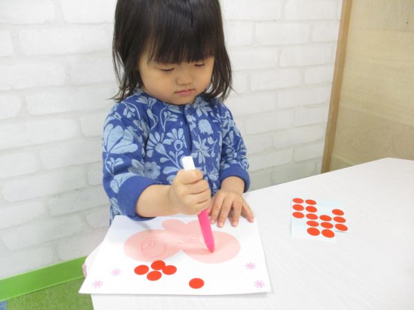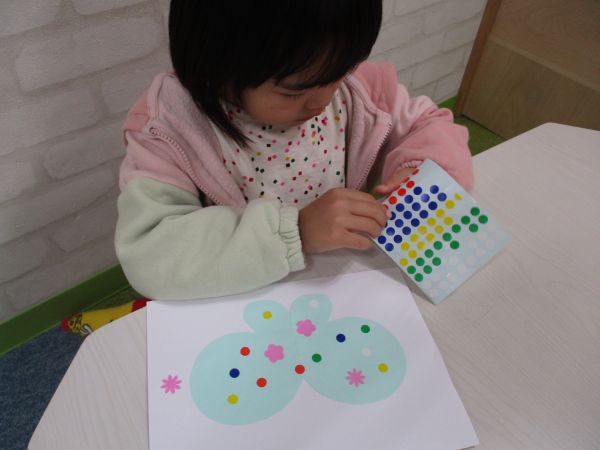 ペンよりシールの方が人気でした😊大きいお友だちは小さいシールに挑戦しましたよ🌷