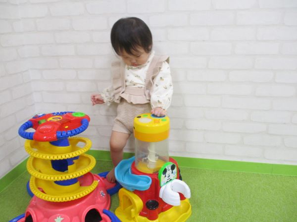 お母さんと離れたくなくて「お部屋いかない」といやいやしていたお友だちも少しするとニコニコで遊び始めました。
