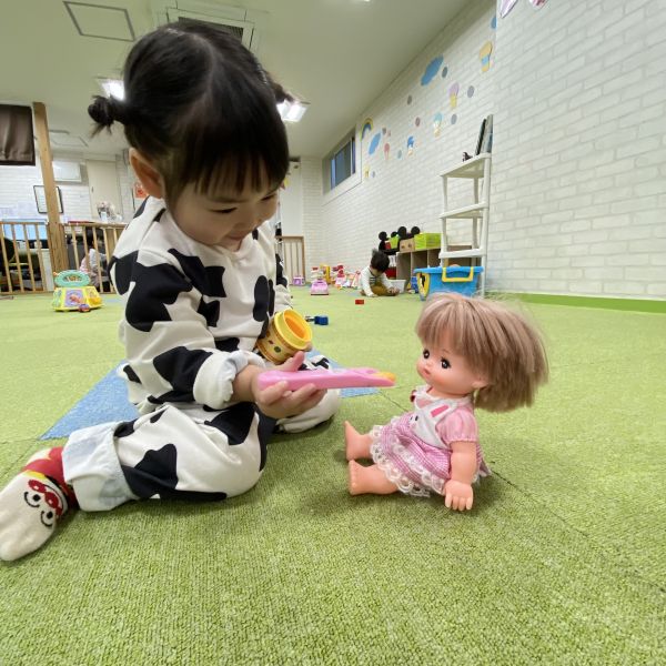 涙が出ていたお友だちも保育士の抱っこで少しずつ落ち着き、おもちゃで遊べるようになりましたよ✨
