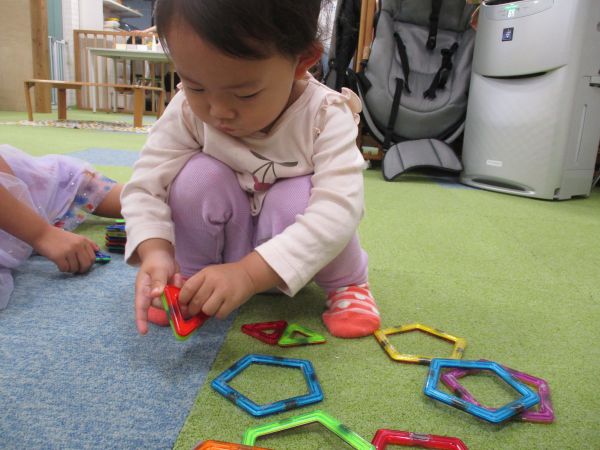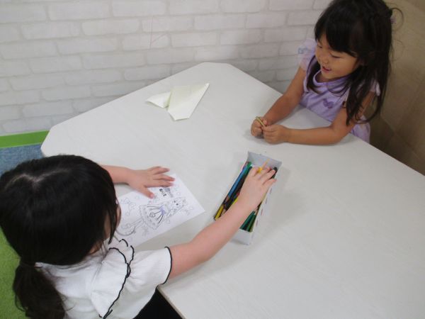 他にも、積み木をたかーくつみあげる勝負を保育者としたり、お姉さんたちは仲良くなったお友だちと遊びはお互い違うことをしながらも「その服プリンセスみたいでかわいいね💕」「あとで、一緒の塗り絵しようよ~」とお話を楽しんでいる姿もみられました🌼🥰小さいお友だちにおもちゃを渡してくれたり、優しくトントンをしてお昼寝のお手伝いもしてくれました🌈💤