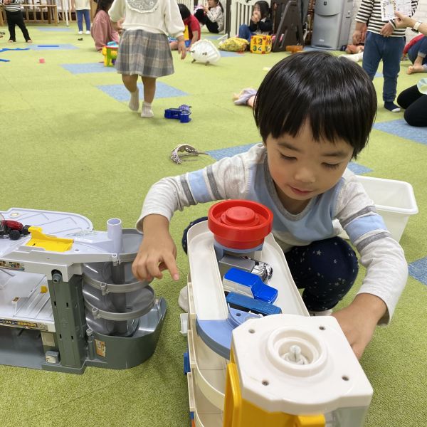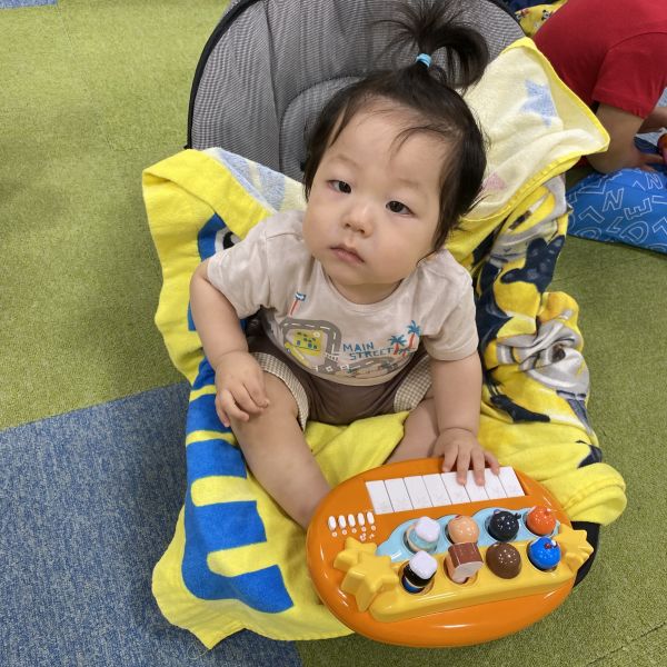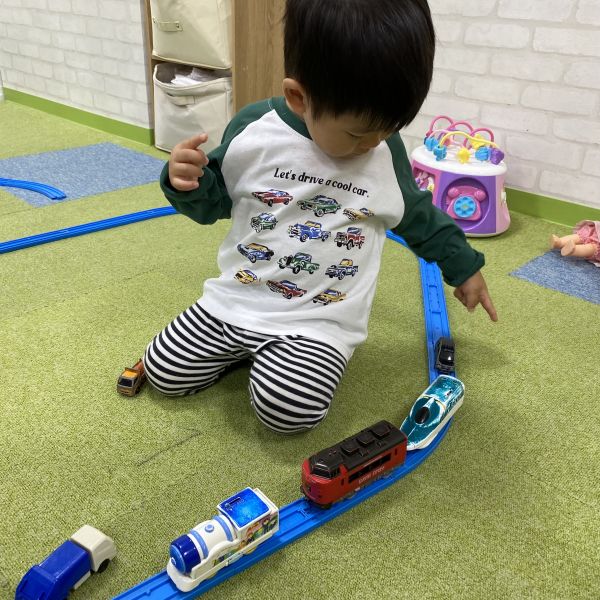 お部屋の中では、ベビーカーのおもちゃに人形を乗せてお散歩するお友だちがとっても多いです‼