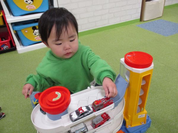 1・2歳の男の子が多く、広ーい室内を元気いっぱい駆けまわったりトミカやプラレールなどで沢山楽しんでいました🎶