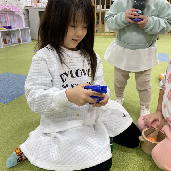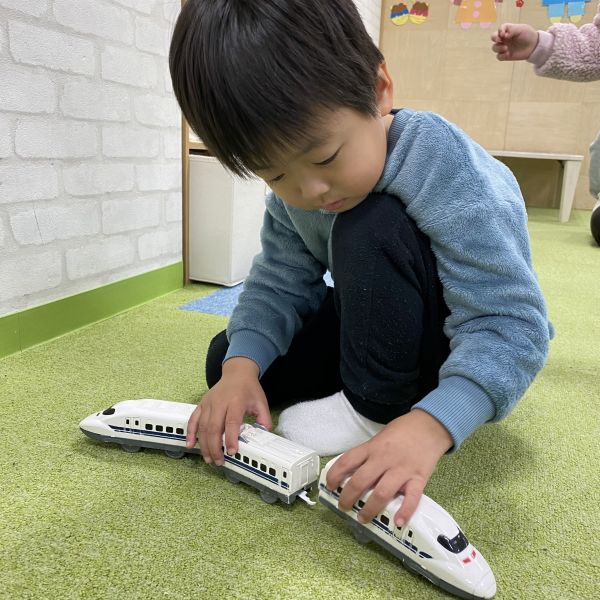 最初は親御さんと離れて緊張している姿がありましたが、すぐにおもちゃを見つけて楽しそうに遊んでいましたよ🧸
