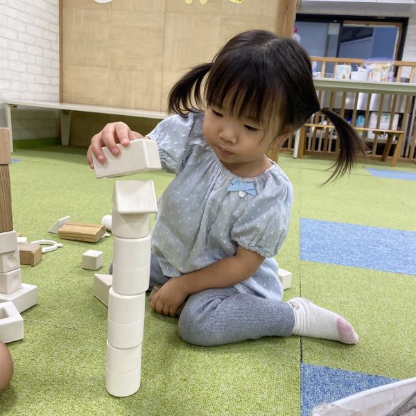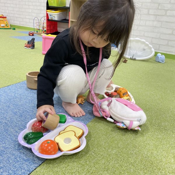 おままごと遊びではいろんなお野菜をお皿に乗せ、色とりどりのプレートを完成させると、先生に『お待たせしました~どうぞ~🍽』と嬉しそうに持って来てくれました🥬🍅