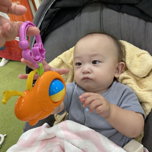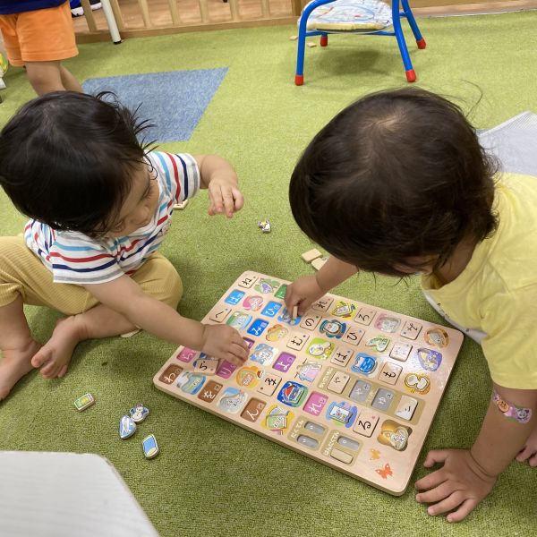 小さなお友だちは、パパママとのバイバイが寂しくて涙を流す子もいましたが、少しずつ慣れてくると先生やお兄ちゃんお姉ちゃんたちの側で玩具を触って遊ぶ姿も見えました👀