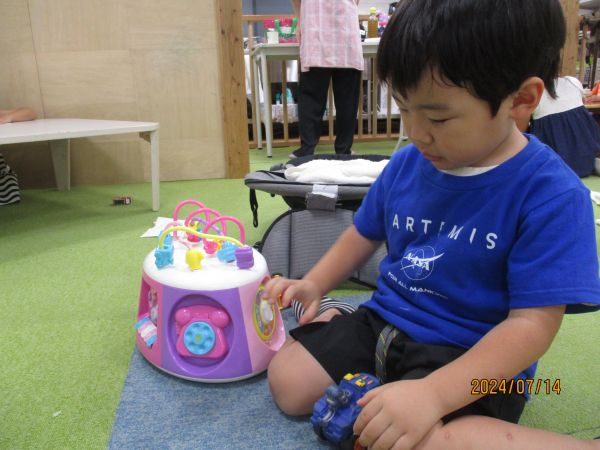 最初は緊張している様子や泣いている子もいましたが、すぐに遊びたい玩具を見つけて楽しそうに遊んでいました❕